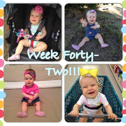 She has grown and changed so much, it's truly unbelievable. I took her in for her nine month check-up and our pediatrician was like...well...she is definitely not a tiny baby anymore...she has developed into her own self and has quite the personality! Such sweet words! But man...it just really hit me that she is growing up SO fast. I guess it was just because he hadn't seen her in a couple months and he noticed such a drastic difference in her from the last time he saw her. And those of us that see her everyday know that she is growing, changing, and developing, but it's just so much obvious to someone who hasn't seen her for a few months! As for her 9 month check-up...she didn't have to have any shots. So, this mommy was extremely happy! But, I actually wound up taking her in a week before her nine month check-up because she had a terrible cough and I knew it had started to settle in her chest. She was gobbling down her food, but was so completely disinterested in her bottles, it was panicking me. Like literally...I think I probably had a mild panic attack that week. She was seriously drinking between 5-10 ounces a day. I was a petrified mess. But, I tried to keep telling myself that she was eating her food, her snacks, she was happy, she was completely normal except that she wouldn't drink her bottles. Well...she was so stopped up from the cold that she had that it was hard for her to breathe while she was drinking. I had been giving her a couple of breathing treatments everyday. But, when we went in for her cold/nine month check-up, our doctor told me to give her four treatments a day and he also prescribed Amoxicillin just to nip a possible ear infection in the butt before it could develop from all the drainage. She had lost a little bit of weight because of her not eating, but he wasn't concerned. She weighed 14.13lbs (she had just been a little over 15lbs when we weighed her at home) and was 26.5 inches long. All was good except for he yucky cough and stopped up nose. And thankfully...it only lasted a week!