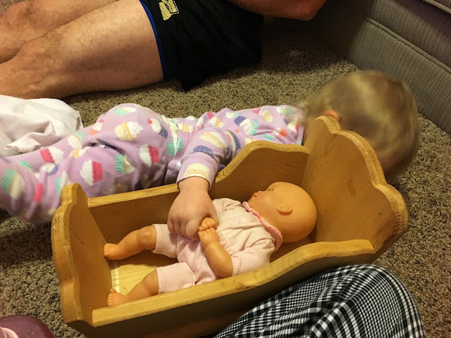 The nurses are so sweet to call every so often while she was back having her surgery. They called when she was just starting, when she was finished, and then they came to get us so we could go back with her during recovery. Recovery is so hard. She is in so much pain and is still so sleepy from the anesthesia. And...she's also so thirsty and hungry. She actually came out of this a little bit better than the second time, but not near as good as the first time. She had just been under the anesthesia for so long... The first thing she asked for was apple juice. And man, did she chug it?!? Which, in hindsight was not a good idea. She kept it down and about 30 minutes later, they released us and we headed back to the Harrison's house. On the way there, Seiden got sick. I'm not sure if it was the mixture of driving and the motion of the truck, the anesthesia, and the apple juice, or just the fact that this was just a lot on her little body, but all the apple juice she had drank came up. After that, she was fine and we got to the Harrison's house a few minutes after that happened, got her changed, and everything was fine. She took a nap and woke up a couple hours later and wanted to play. But, that didn't last long either. From the time she woke up from her nap until early morning that next morning. She fell asleep in the crib, then wound up in bed with me, and then mom and I made a pallet in the playroom floor and I slept on the floor in there with her and mom slept on the couch. It was so scary. I had called the on call nurse about the fourth time Seiden had gotten sick to tell her what was happening. This had never happened any other time she had been under anesthesia, so it was very concerning. The nurse told me just to watch her super closely and to call if anything had changed. She told me it was normal for this to happen after being under anesthesia, but it was still something that needed to be monitored. Jenny was her name, and she told me that she would call me first thing in the morning to check on her. Mind you, that next morning was a Monday and she had kids that she had to get ready for school. Jenny called me at 7:15 that morning to check on Seiden and see how our night had been. I could hear her own kids chattering and doing the normal "getting ready for the day" things. And in between all that, Jenny took the time to call me. And mornings are crazy when you're a mama! I told her we had been up a lot during the night, but that Seiden had slept for a solid 5 hours (yes...we were up every hour until about 2:30). She told me that was a good sign, but asked me to call her and let her know how our day goes. Thankfully, Seiden didn't get sick anymore and just proceeded to sleep for the better part of the morning,,,snuggled up in my lap. It was bittersweet watching her sleep on me. She woke up about 1:30 and wanted to eat lunch. I made her a PB&J and she ate every bite of it. Not too long after that, she fell asleep again. By the time it was dinner time, she was acting a little bit more like her normal self, so mom and I decided to take her on a little outing to get some fresh air and just get out of the house. We ran a couple of errands and then picked-up dinner and headed home to the Harrison's.